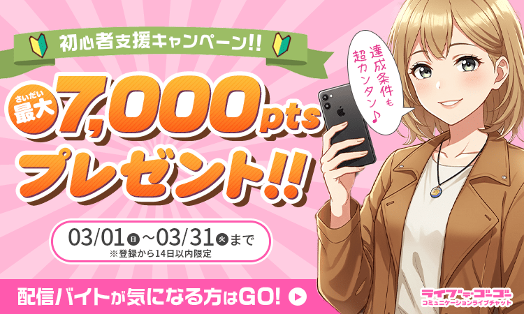 【3月限定イベント】ライブでゴーゴー初心者支援キャンペーン開催🎉ログインだけで合計7,000PTGET!!🎁