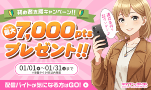 その1:新人さん応援☆合計5時間で7,000ptsボーナスプレゼント!